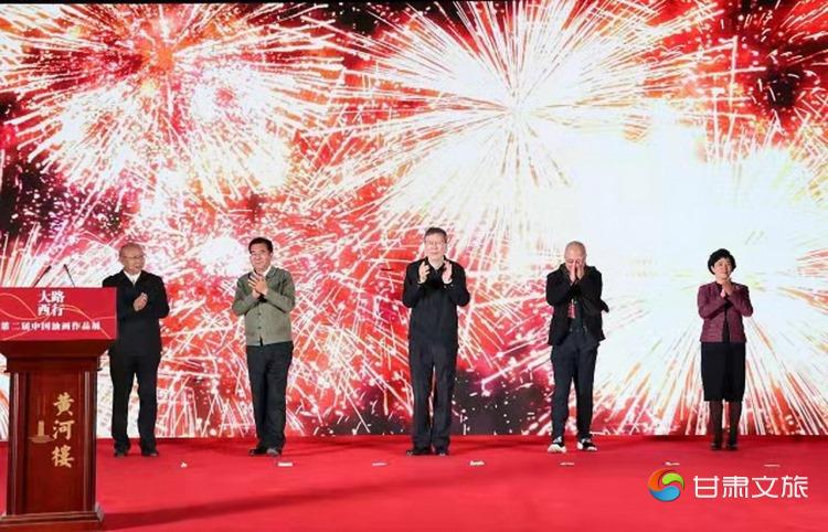 10月11日晚,“大路西行——第二届中国油画作品展”在兰州黄河楼景区盛大开幕。